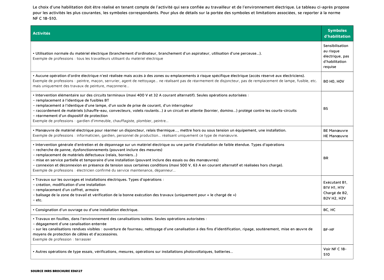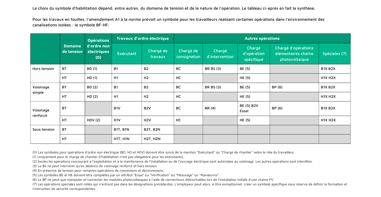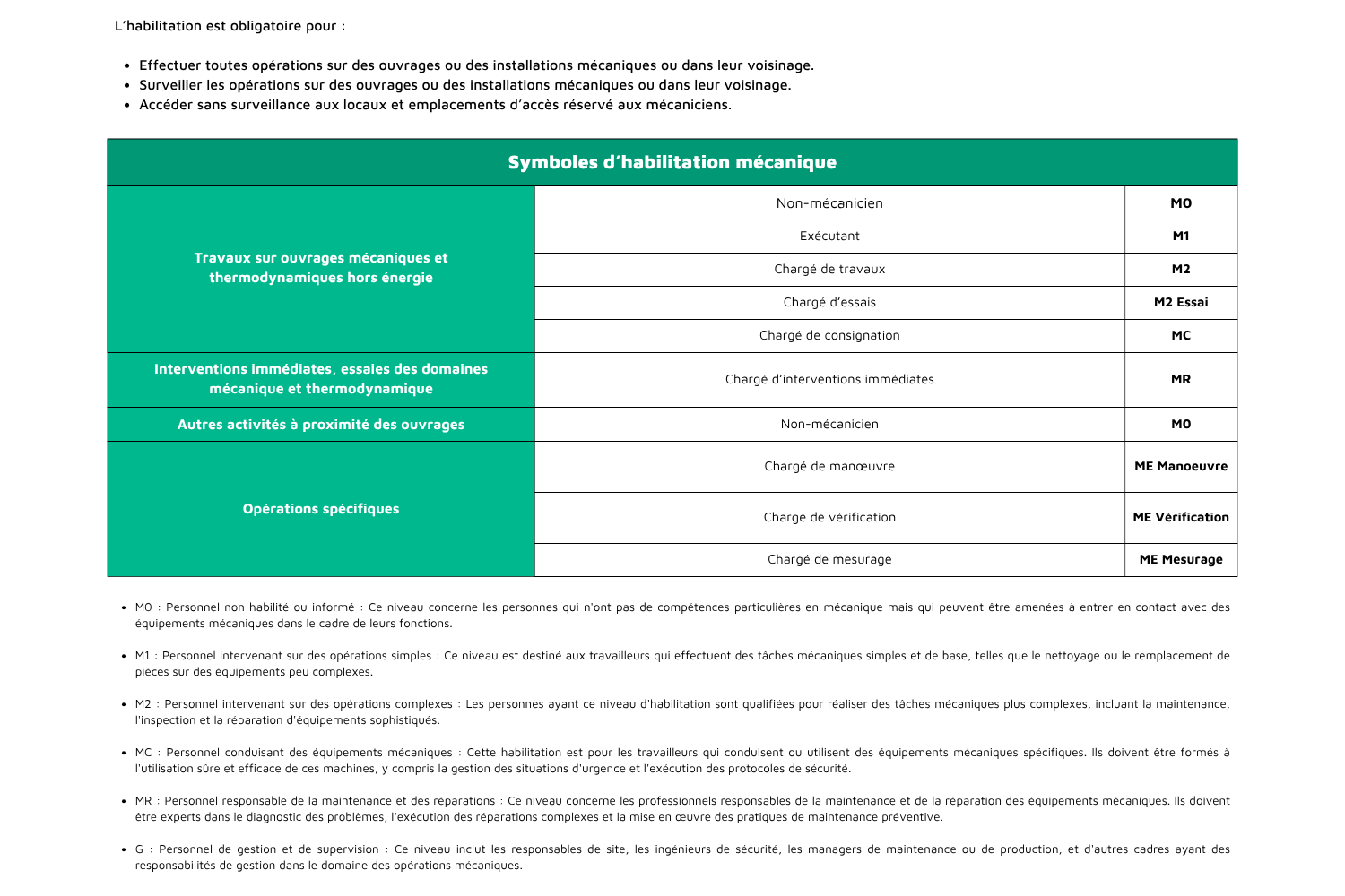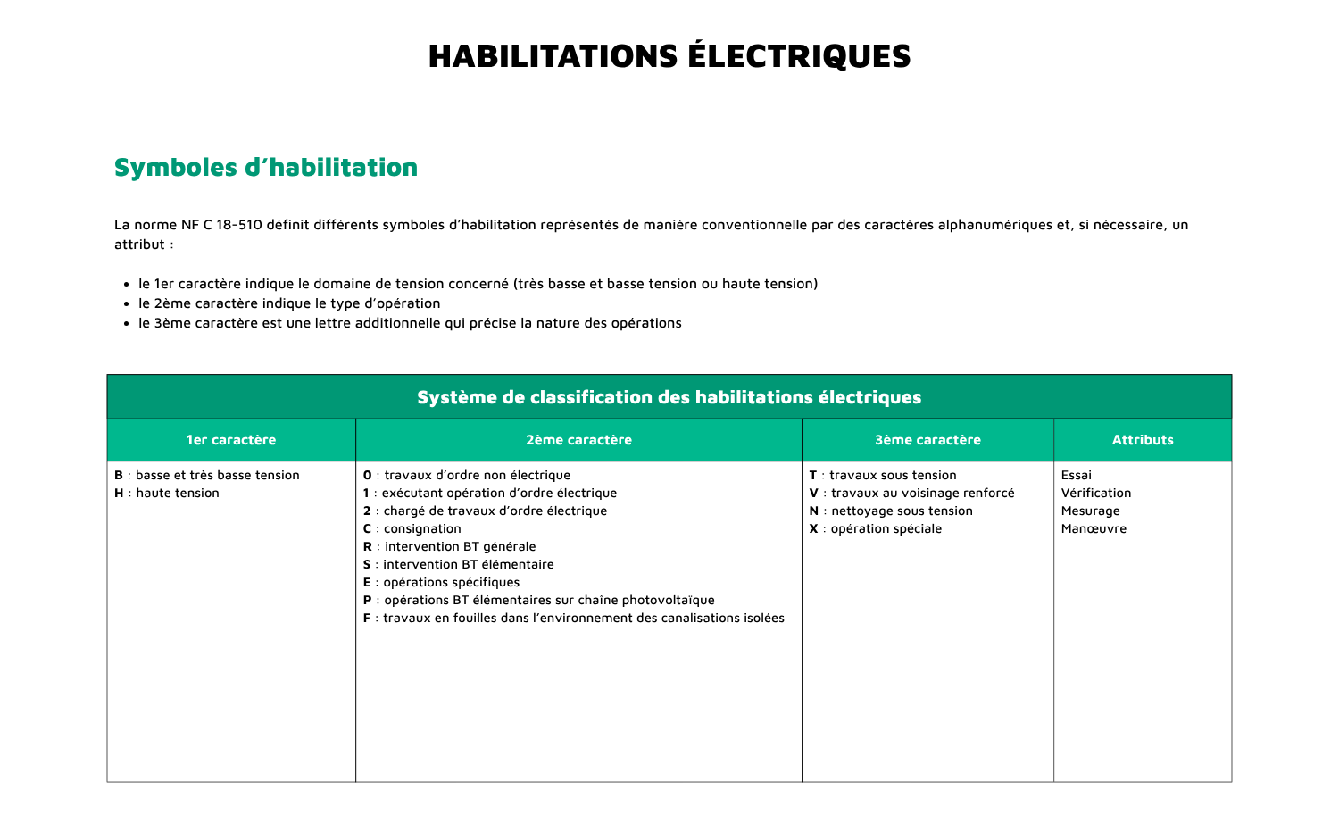 Vous trouverez ci-dessous un aperçu des différents niveaux d’habilitations électriques et mécaniques que nous proposons.